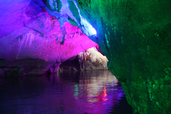 在景区工作人员的引导下,大家按次序走进洞穴,观赏这大自然馈赠给人类的珍宝,硕大的溶洞里布满着各种钟乳石,在灯光的照射下,仿佛置身在色彩斑斓的童话世界里。而更让人惊叹的是,在洞的下方深处隐藏着一条长长的地下暗河。大家乘着小舟,畅游在地下河上,感受着大自然的鬼斧神工和人与自然的和谐统一。