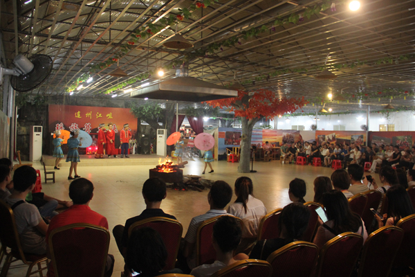 晚餐后,一场颇具瑶族风情的篝火晚会盛大上演。绚丽多彩的瑶族服饰、优美粗犷的瑶族歌舞……整个晚会不仅观赏性十足,而且还有找新娘、跳竹竿舞等节目让我们也参与其中。在晚会尾声大家手牵手——踩歌堂。篝火熊熊燃烧,歌声飞向天外,大家尽情地跳、开怀地笑,把所有的美好心情都交给了这个欢乐的夜晚。