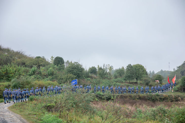 第二天,全体学员沿着当年红军走过的“湘桂古道”进行了急行军。“湘桂古道红军路,一步一尊烈士身,一草一木一英魂,一山一石一丰碑”!全体学员亲身体验了红军当年长征路上的艰苦环境,身临其境地感受到红军崇高的革命精神和坚忍不拔的意志。