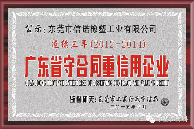 公司连续三年荣获“广东省守合同重信用企业”称号