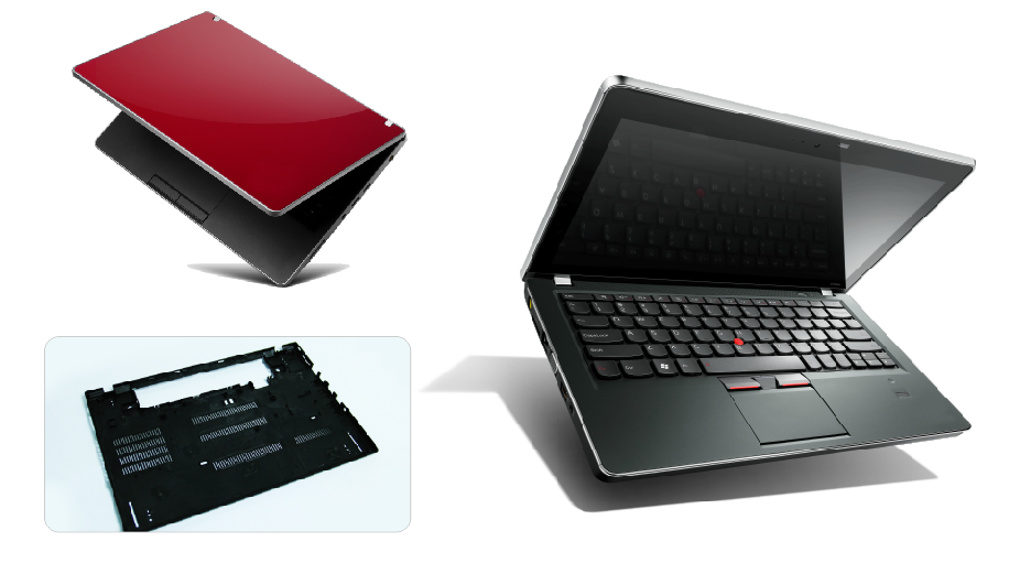适用于各类高要求笔记本电脑的前壳、中壳、模内镶五金成型和后壳等。