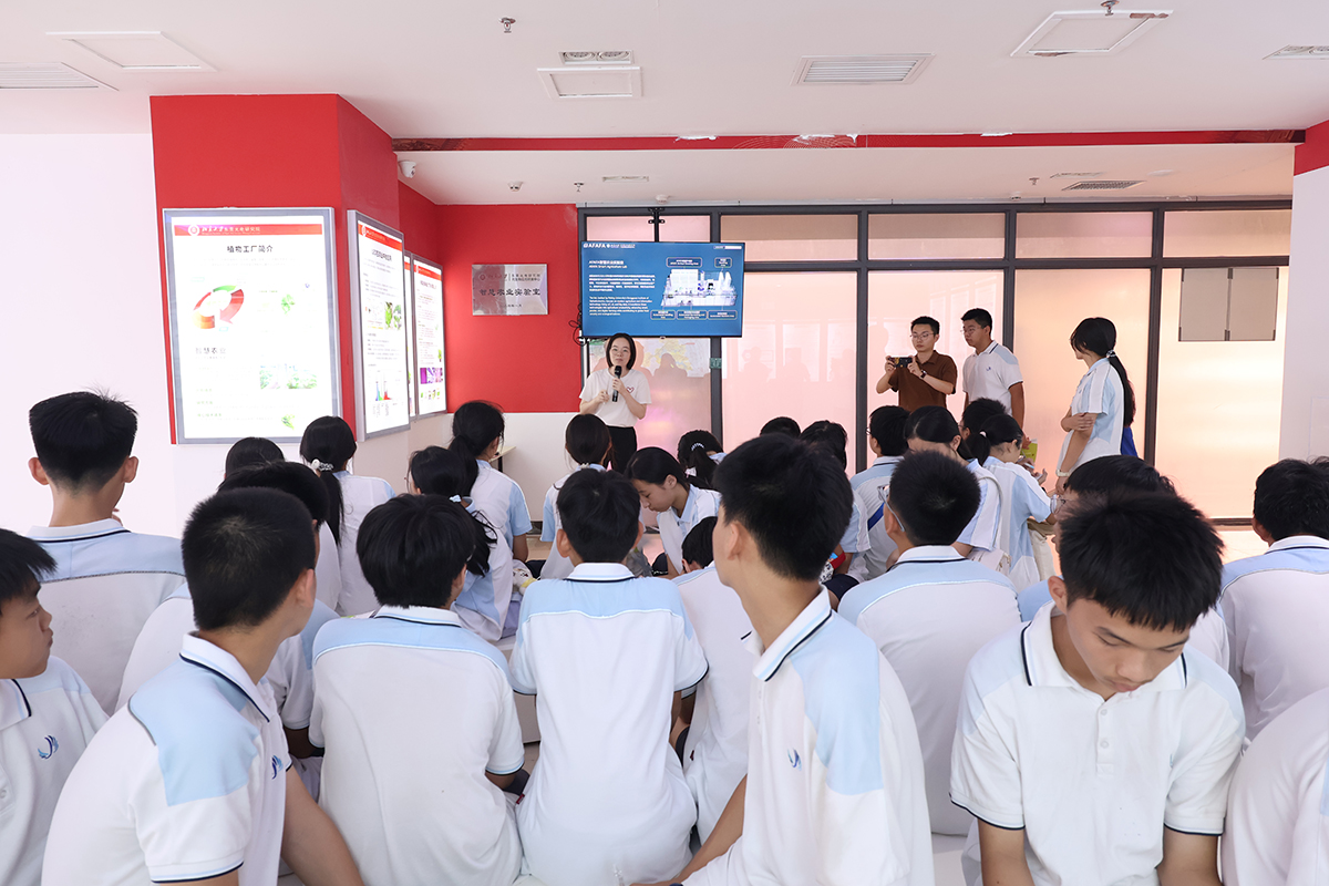 研学活动的核心环节聚焦科技创新与实践应用。讲解员老师深入浅出地介绍了智慧农业实验室,精彩的讲解结合实景演示,生动展现了光电传感、物联网等尖端技术如何赋能现代农业,引发学子们对科技改变生活的无限遐想。作为研究院荣获国家科学技术进步二等奖项目的科普转化窗口,智慧农业实验室将抽象的科研成果转化为可交互、可体验的实景课堂。在这里,学生们不仅能触摸到尖端科技与农业生产的融合实践,更通过可视化的技术演示,构建起“科技赋能产业”的具象化认知框架,让国家级科研成果以可感知的方式成为连接理论与实践的桥梁,在青少年心中播撒科技创新的种子。